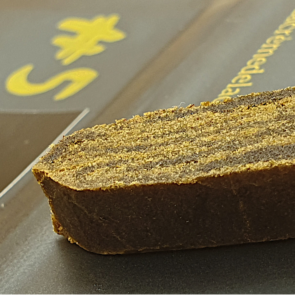 Ce n’est pas un simple mélange : c’est un blend de 3 pollens, pressés ensemble pour créer un effet visuel strié unique quand tu le découpes — comme un cake marbré, version hash.